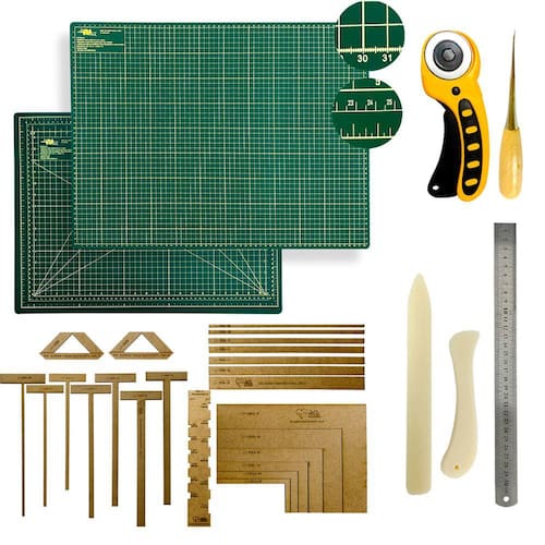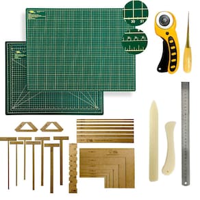 Quer trabalhar com Encadernação, Cartonagem e Scrapbook, e está precisando de um conjunto de ferramentas completo para te ajudar? Não procure mais... Temos a solução ideal para você! Kit com base de corte dupla face e flexível que serve como área de trabalho, possui a medida de 60cm x 45cm, excelente para organizar seu espaço, proteger seus moveis, cortar papeis, tecidos entre outros. Enviamos também um kit completo de réguas e Gabaritos em MDF para Scrapbook e artesanato. 7 - Gabaritos Medidas 6mmx30cm, 8mmx30cm, 10mmx30cm, 12mmx30, 15mmx30cm, 18mmx30cm, 20mmx30cm 2 - Réguas Fio de Cabelo 7- Esquadros Medidas: 30x22cm ( largura 5cm), 25x17cm (Largura 4cm), 21x13cm (Largura 3cm), 18x10cm (Largura 2cm), 16x8cm (Largura 1,5cm), 14,5x6,5cm(Largura 1cm) 7- Gabaritos em T Medidas: 6mmx32cm, 8mmx32cm, 10mmx32cm, 12mmx32cm, 15mmx32cm, 18mmx32cm, 20mmx32cm 1- Gabarito para Wire O (fio) 2x1 e 3x1 Medidas 2x1(Lado Direito): 5/8 120 Folhas, 3/4 140 Folhas, 7/8 180 Folhas, 1" 200 Folhas, 1 1/8 250 Folhas, 1 1/4 270 Folhas. Medidas 3x1 (Lado Esquerdo): 1/4 25 Folhas, 5/16 50 Folhas, 3/8 60 Folhas, 7/16 85 Folhas, 1/2 95 Folhas, 9/16 110 Folhas. Enviamos uma régua de metal de 60cm 2 ferramentas para dobrar e Vincar. 1 Cortador Manual de tecidos e papel com disco de 45mm. Agulhão furador com cabo de madeira Descubra a facilidade de fazer cadernos, capas, agendas entre outros com esse Kit completo, você poderá fazer cortes precisos em qualquer material sem ter que se preocupar em danificar as superfícies ou desperdiçar material. Desbloqueie seu potencial criativo! Compre agora o Seu kit completo e facilite os projetos de artesanato e patchwork.