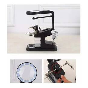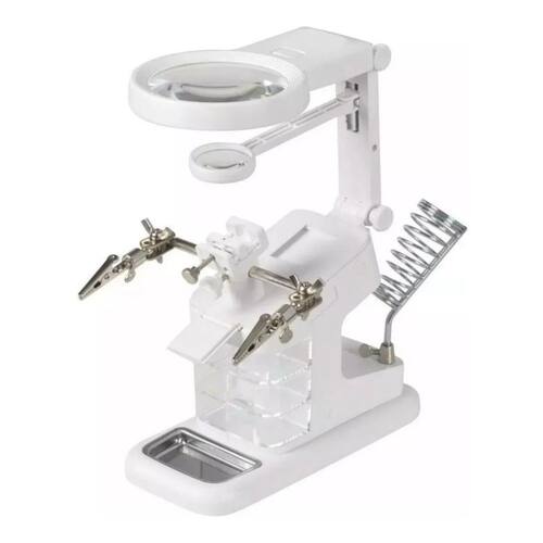 Característica 3.5\\ 2X\\ NIluminada\ nHelp\ nEstação portátil de lupa com lente auxiliar\ N4x360\ nGirar o pescoço e os braços flexíveis permite ajustar a lente na posição desejada\ nCom luz LED com 2\ nLuzes LED superbrilhantes, desenvolvidas por cabo USB (incluído) ou 3 pilhas de peitoril AAA2 totalmente ajustáveis com clipes e clipes de jacaré, suporte de ferro e bandeja (patente pendente) estação de trabalho ideal para soldagem, construção de modelos, reparo de eletrônicos, projetos de bricolage, hobbies e artesanato. • Feita com uma lente acrílica sem aro; projetada para amadores e profissionais, como soldadores, eletricistas e técnicos.\ n • Projetada para sua casa ou oficina\ n • Esta lupa manual 2X Help é ideal para soldagem, construção de modelos, reparos eletrônicos, projetos de bricolage, joias, hobbies e artesanato. Enquanto a lente de ponto auxiliar 4 X adiciona zoom extra quando você precisa ver mais detalhes. • Estação de trabalho ajustável • Há dois pontos ajustáveis no pescoço da unidade, permitindo que a lente de aumento seja colocada em diferentes ângulos e alturas. Os elementos devem segurar firmemente a braçadeira e os 2 clipes de jacaré em um giro de 4 vias, e a seção em que os clipes também pode ser ajustada em altura. A lente pode girar 360 graus.\ n • Feita para durar\ n • Construída com lentes de acrílico, metal e ABS resistentes a arranhões, nossas múltiplas funções ajudam a lupa manual a ser robusta e durável.• Acenda enquanto amplia\ n • Equipada com 2 luzes LED superbrilhantes para fornecer uma área de visualização uniformemente iluminada, mesmo em condições de pouca luz. As luzes de parede se conectam ou funcionam com 3 pilhas AAA ou uma fonte USB como banco de energia. • Especificações\ n • Lente principal de 3,5 “(90 mm): zoom 2 X\ n • Lente de distância focal 2 X: 8"\ n • Lente de 0,9 pontos (23 mm): zoom 4 X\ n • Lente de distância focal 4 X: 2\ n • Pescoço ajustável\ n • Pinça giratória de 4 vias\ n • Um mini separador braçadeira dobrável\ n • Um suporte de ferro\ n • Uma bandeja de metal\ n • Duas luzes LED\ n • Requer 3 pilhas AAA (não incluídas) • Também pode ser alimentada por uma fonte USB\ n • 2 X de 3,5 polegadas iluminada manualmente, ajudando a estação de lupa com 4 x, lente auxiliar • O pescoço giratório ajustável permite que os usuários ajustem a lente na posição em que mais precisam • LED iluminado com 2 luzes LED super brilhantes. Alimentado por cabo USB (incluído) ou 3 pilhas AAA\ n • 2 mãos ajustáveis com braçadeira e clipes de crocodilo, suporte e bandeja (patente pendente)\ n • Estação de trabalho perfeita para soldagem, construção de modelos, reparo eletrônico, projeto de bricolage, hobby e artesanato\ n