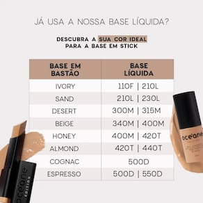Formulado com vitamina E, ácido hialurônico, óleo de jojoba e rícino, esse item possui textura cremosa que não deixa a pele oleosa, além de ser fácil de espalhar e esfumar. Ah, e nossa base em bastão também disfarça pequenas imperfeições sem marcar as linhas finas. Bom, né?