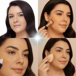 Agite antes de usar. Aplique uma pequena quantidade da base com o auxílio de um pincel ou esponja. Comece pelo centro do rosto e espalhe para as extremidades, em seguida dê leves batidinhas até o produto aderir na pele de maneira natural e sem marcas.