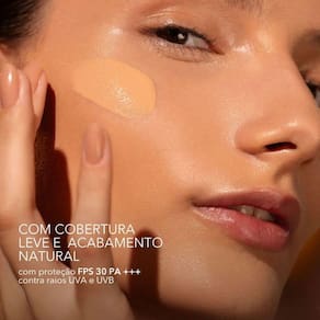A fórmula vegana dessa base Océane ainda ajuda a manter a pele hidratada, já que tem bisabolol, a alantoína e 4 tipos de moléculas de ácido hialurônico. E os benefícios não param por aí: com proteção FPS 30 PA +++, ainda previne os danos causados pelos raios UVA e UVB, e vem com um cheiro suave, que mal dá para notar, para evitar qualquer desconforto.