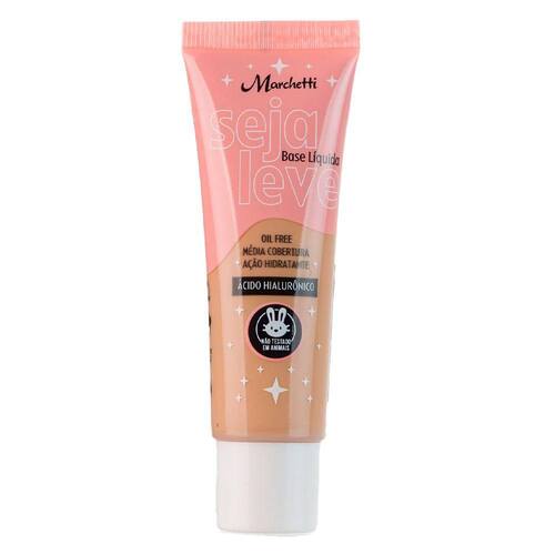 A Base Líquida Marchetti Seja Leve Bege Médio 04 proporciona média cobertura com efeito uniforme e super natural. Sua fórmula possui tecnologia oil free e uma excelente absorção, deixando sua pele hidratada e lisinha com uma make natural e uniforme. Possui textura semi-matte, efeito soft focus e Ácido Hialurônico na composição.