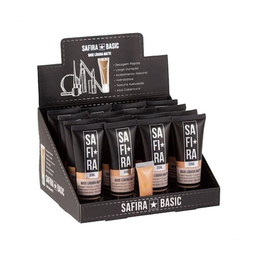 Itens que acompanham o kit:16 Base Líquida Safira Acabamento Matte (tom conforme estoque)