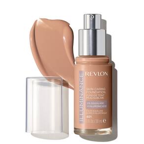 Base líquida Revlon Illuminance para cuidar da pele, ácido hialurônico, fórmula hidratante e nutritiva com cobertura média, café leve 401 (pacote com 1)