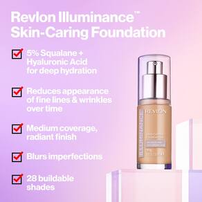 Base líquida Revlon Illuminance para cuidar da pele, ácido hialurônico, fórmula hidratante e nutritiva com cobertura média, 513 camurças marrons (pacote com 1)