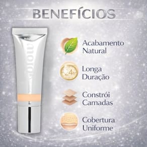 Adaptável a diversos tipos de pele, incluindo peles mistas e oleosas, proporcionando um acabamento natural e confortável.