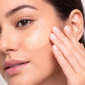 - 2. Aplique uma pequena quantidade de base no rosto, utilizando um pincel, esponja ou as pontas dos dedos.