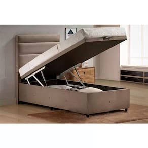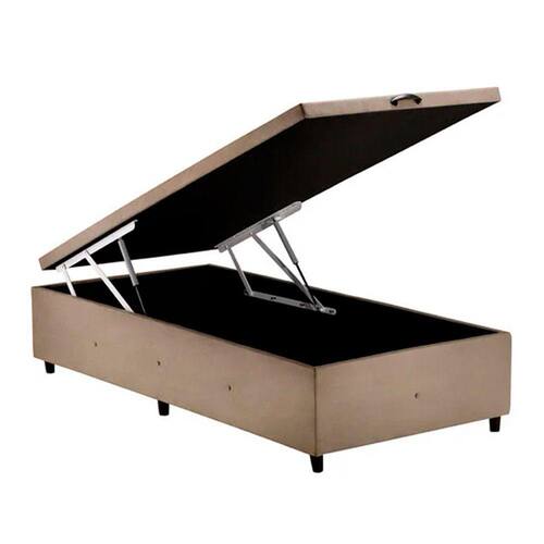 Característica: Para colchão de: 88 x 188 cm Material: Madeira de Eucalipto e MDF Revestimento: Espuma 100% poliuretano revestida com tecido 100% poliéster Acabamento: Matelassê e Botonê Tampo: Tecido Antiderrapante Tratamento no tecido:Antiácaro, Antialérgico, Antifungo Levantamento do tampo: Articulador com pistão a gás Altura interna do baú: 27,00 cm Peso suportado por pessoa: 120 kg Pés: Madeira Altura dos pés: 7 cm Sistema de montagem: O baú já vai montado, só precisando fixar os pés Observações: O tampo pode ser aberto com o colchão sobre ele. Atenção: Este móvel não acompanha itens de decoração. Imagem meramente ilustrativa Respiros laterais:Sim