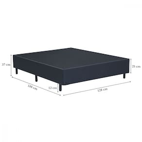 Características: - Altura do box: 25 cm - para colchão de viúva -128x188 cm- - Material estrutura: Madeira -Pinus tratado e eucalipto- - Não possui antiderrapante - Possui tratamento contra cupins - 7 pés fixos de madeira com 12 cm de altura na cor preta - Suporta até 200 kg - Garantia de 3 meses