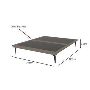 A estrutura bipartida facilita o e a montagem, sendo perfeita para ambientes com acessos estreitos. com colchões king size (195 cm de largura), essa base é a escolha ideal para quem busca qualidade, resistência e design refinado.