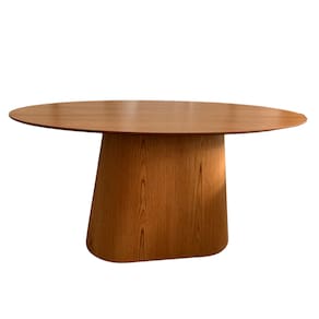 Base Cone Oval em estrutura de MDF flexível com o acabamento em Lamina Natural Freijó, fabricada artesanalmente com acabamento único para cada peça. Possui sapatas plásticas, contra tampo MDF.