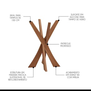 CARACTERÍSTICAS TÉCNICAS: - Produzido em Madeira Maciça Sustentável - Acabamento em Verniz na cor Imbuia - Possui Suporte para Vidro em Silicone - Ideal para Tampos de 100 cm - Produto Enviado Montado