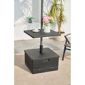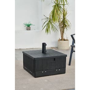 "Adicione um toque de elegancia e funcionalidade ao seu espaco ao ar livre com a Base para Ombrelone com Mesa Dubla 53x53x30 cm. Esta peca robusta, feita de Pead de alta qualidade, e projetada para resistir a todas as condicoes climaticas, garantindo durabilidade e longevidade. Com um acabamento na cor preta, esta base de guarda-chuva com mesa se adapta a qualquer decoracao externa, proporcionando um charme discreto e sofisticado.