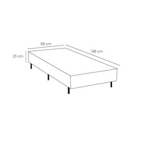 Base Solteiro Cama Box Courino 25x88x188 A Base Solteiro Cama Box Courino 25x88x188 é um excelente produto para modernizar de forma prática o seu quarto. Toda produzida com resistente madeira de reflorestamento. Revestida em Courino, oferece um lindo e elegante acabamento. Ideal para acompanhar Colchões de 88cm. A Base acompanha jogo de pés. Aproveite!\nMedidas\nAltura 25 cm\nComprimento 188 cm\nLargura 88 cm\nCaracterísticas\nModelo Base Solteiro Cama Box Courino\nTipo do produto Base Box\nFabricante Alto Nível\nMaterial Madeira de Reflorestamento\nTamanho Solteiro\nProteção Antiácaro, Antialérgico e Antimofo\nTipo de Colchão 88 cm x 188 cm\nPossui Pés 06\nGarantia 3 meses\nInformações Importantes\nObjetos decorativos que porventura apareçam na foto, não acompanham o produto. Não nos responsabilizamos pela montagem/instalação dos produtos.\nMontagens, desmontagens e instalações são responsabilidades do cliente. Indicamos que contrate uma empresa de montagem ou um montador de sua confiança.\nAlém disso, favor verificar se os pés e acessórios estão dentro do forro inferior do produto. Em suma, todas as informações divulgadas sobre o produto são de responsabilidade do Fabricante.\nAs cores do produto podem variar de acordo com o seu monitor, a iluminação do ambiente em que você está e até mesmo a sua percepção visual. Além da cor, pequenos detalhes e acabamentos podem não ficar evidentes na foto, por isso as imagens são meramente ilustrativas.