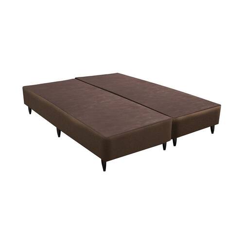 Informações Técnicas: -Estrutura Interna: Estrutura em madeira Eucalipto Domus de Reflorestamento. -Estrutura Externa: Revestimento em Linho -Cor: Marrom -Altura: 23cm - Largura: 193cm - Comprimento: 203cm -Capacidade de suporte: Até 150kg por pessoa -Acompanha: 2 partes da Base Sommier Ortobom + kit pés + Manual