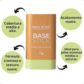 A Base Miss Rôse Stick Y04 é a solução perfeita para quem busca alta cobertura e praticidade em um único produto. Sua textura cremosa desliza facilmente sobre a pele, proporcionando um acabamento suave, uniforme e de longa duração. Com o formato em stick, é fácil de aplicar, ideal para quem tem uma rotina acelerada ou deseja retoques rápidos durante o dia. A base oferece excelente cobertura, disfarçando imperfeições, manchas e outros detalhes da pele, deixando-a impecável. O tom Y04 é perfeito para peles morenas médias a escuras, proporcionando um acabamento natural e luminoso. Sua fórmula de alta performance não só garante uma cobertura sem falhas, mas também oferece um efeito matte, controlando a oleosidade e proporcionando uma pele radiante e sem brilho excessivo ao longo do dia. Ideal para todos os tipos de pele, a Base Miss Rôse Stick Y04 proporciona um visual impecável com praticidade e agilidade.
