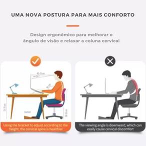 Base Suporte Apoio Notebook Ajustável e Ergonômico Cinza - Conforto e Flexibilidade Talvez você não saiba mas trabalhar por horas e horas com o computador em uma posição ruim pode ser extremamente prejudicial, causando até mesmo problemas crônicos de coluna para o usuário. Por isso nosso suporte faz a correção da sua linha de visão à tela do notebook, ajustando sua coluna para a posição correta, proporcionando maior comodidade e conforto, evitando fadigas nas regiões lombar, nuca e pescoço. resistente Base feita em metal resistente e equipado com tiras antiderrapante, além de possui no centro no formato M cruzado trazendo ainda mais reforço para aguentar basicamente todos os tipos de notebooks atuais. Deixe seu computador respirar Além de cuidar da sua saúde, nosso suporte possui 6 níveis de altura para deixar o notebook elevado na mesa, permitindo a livre circulação do ar debaixo do aparelho garantindo uma boa refrigeração e ajudando a evitar o superaquecimento. Características: Totalmente portátil - Suporte extremamente leve e compacto além de ser dobrável para caber em qualquer lugar Pronto para usar - não é necessário uso de parafusos ou qualquer ferramenta; Resistente - suporta o peso dos modelos de notebook mais pesados presentes no mercado verificar características técnicas para mais detalhes ; Regulagem de largura - o ajuste de largura é milimétrico, adaptando-se às dimensões do notebook; Regulagem de altura - apresenta regulagem de altura em 6 vários níveis diferentes, permitindo ajuste conforme a estatura da pessoa; Suporta Notebooks com base inferior base do teclado medindo até 2,5 cm de espessura; Níveis de Elevação Nível 1 - 15º Nível 2 - 20º Nível 3 - 25º Nível 4 - 30º Nível 5 - 35º Nível 6 - 40º Características Técnicas Material: Alumínio Dimensões A x L x C : 15,5 x 24 x 15,5 Elevação Máxima: 40º Equipado com tiras antiderrapante Itens Inclusos 1 Suporte articulado para notebook ====================== Dúvidas Frequentes - É de alumínio ou plástico Todo feito em alumínio - O Suporte é antiderrapante Sim O suporte possui tiras antiderrapantes espalhadas para evitar movimentação do notebook. - O produto é resistente Trabalhamos apenas com produtos com material de altíssima qualidade, durabilidade e procedência. Marca: Não Informado