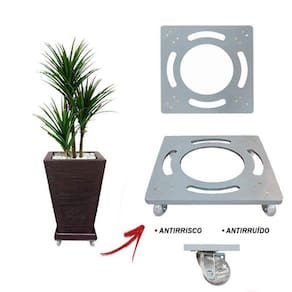 Base Suporte De Alumínio Quadrado Com Rodízios Gel Vaso 30Cm