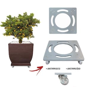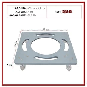 Base Suporte De Alumínio Quadrado Com Rodízios Gel Vaso 45Cm Suporte de alumínio Quadrado com rodinhas de silicone gel anti-risco e anti ruido. Ideal para facilitar a locomoção de objetos em geral, como vasos de plantas, eletrônicos, eletrodomésticos, entre outros. Em qualquer ambiente, sem ruídos e sem riscar ou danificar o seu piso 4 rodízios giratórios - suportam até 200 kg Modelo SQA45 Medidas técnicas do suporte: Altura total: 7 cm; Largura da base: 45x45 cm; Medidas técnicas do rodízio: Contém 4 rodas Diâmetro da roda: 50 mm; Vantagens: · grande durabilidade e resistência; · não enferrujam; · não riscam; · antirruídos; · suportam grande quantidade de peso
