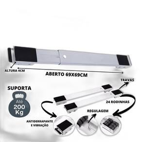 - Fácil de usar, ele é ajustável profundidade e largura e vai de 40cm até 69cm de tamanho. - Possui travas e quando precisar mover o eletrodoméstico de lugar é só destravar. - Aço Resistente e Reforçado para suportar qualquer tipo de móvel ou eletrodoméstico. - Fácil instalação. - Base Antiderrapante e Anti Vibração. - Ajuda proteger eletrodoméstico e móveis contra a água da limpeza, evitando ferrugem e estrago nas madeiras.