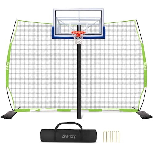 Maior pegador de rede de basquete, 3,6 x 3 m contra 3 m de outros. Redes de barreira de basquete perfeitas para o quintal para evitar perseguir bolas. Compatível com todos os sistemas de gancho, bastões redondos e quadrados, tornando-a uma rede universal de rebote de basquete. Material antirasgos, barreira de rede de basquete para quintal feita com material de poliéster de 5 camadas de alta resistência. Acessórios, rede de devolução de basquete inclui bolsa de transporte, 2 sacos de areia e 4 estacas de chão no valor de $30 no total! Ideal para montar uma rede atrás de cesta de basquete ao ar livre. Configuração fácil em menos de 5 minutos, sem necessidade de ferramentas. Uma solução de rede de proteção de quintal de basquete sem esforço.