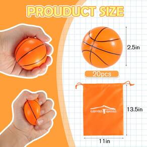 Bolas de basquete para desconforto LovesTown, 20 peças de mini bolas de basquete de espuma macia e pequenas bolas de apertar | Bolas de alívio de desconforto e ansiedade para esportes temáticos de basquete, lembrancinhas de festa prêmios infantis escolares - Material premium: esta mini bola de basquete é feita de espuma, que é macia o suficiente e tem uma boa sensação. Estas bolas podem se recuperar rapidamente, não importa como você as aperte. O revestimento da superfície usa tinta sustentável, que não é fácil de cair - Design perfeito: nossa bola de basquete de espuma é a melhor escolha para aliviar o desconforto e a ansiedade, proporcionando uma sensação de calma e relaxamento para pessoas com TEA, TOC, TDAH e HA. Estas bolas de apertar são leves, você pode carregá-las com você e também podem ser colocadas onde quiser - Aparência adorável: com design realista e formato fofo, as bolas de basquete têm 6,3 cm de diâmetro e são fáceis de segurar com mãos pequenas. Perfeitas para todas as idades, nossas bolas de basquete são ótimos acessórios para festas temáticas esportivas. O tamanho da bolsa de tecido oxford é de 34 x 28 cm, que pode conter todas as bolas de basquete - Amplamente utilizada: estas mini bolas de basquete são muito adequadas para brinquedos de banho, brinquedos de praia, enchimento de sacolas de presente de aniversário, decorações de festa na piscina, presentes de festa, presentes de Natal, prêmios de sala de aula, etc - Incluído na embalagem: 20 bolas de basquete e 1 bolsa de tecido oxford, que são suficientes para você compartilhar e brincar com sua família e amigos