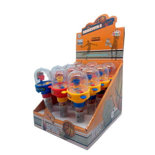 Cesta de basquete interativa com guloseimasDesign atrativo e coloridoTubo resistente para fixaçãoInclui 12 unidades por displayCertificado pelo INMETRO para segurança e qualidadeIdade Recomendada: Acima de 3 anos