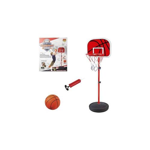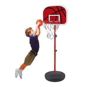 Acompanha 01 bomba de ar manual e 01 bola de basquete de plástico pequena.