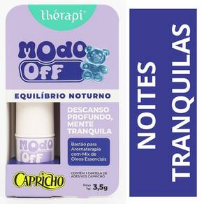 c mix de oleos essencias modo off equilibrio noturno 3,5g therapi capricho Descanso profundo, mente tranquila. Chega a noite e sua cabeça ainda tá a mil Modo off é o toque de calma que ajuda a desacelerar e se desligar do mundo. Feito com ingredientes naturais, ele ajuda a trazer equilíbrio e bem-estar quando o dia acaba, preparando sua mente e seu corpo pro descanso que você merece. Porque dormir bem também é parte do seu glow. ========== Composição português : triglicerídeo caprílico/cáprico, cera de abelha sintética, cera de carnaúba sintética, óleo de soja, óleo de coco, cera microcristalina, de cacau, óleo essencial de laranja doce, óleo essencial de bergamota, óleo essencial de lavanda, de karité, óleo de amêndoa doce, fenoxietanol, caprililglicol, bht, citral, d-limoneno, linalol. ========== Modo de uso: aplique o produto nas áreas desejadas, como pulsos e pescoço, massageando o local com a ponta dos dedos. ========== Anvisa: 25351.091698/2025-71