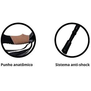 Além da leveza e da versatilidade, outro diferencial é o sistema anti-shock, responsável por absorver impactos e minimizar a sobrecarga em articulações como joelhos e tornozelos. Isso torna o uso contínuo muito mais confortável, reduzindo a fadiga mesmo em longas distâncias. O punho anatômico em EVA, acompanhado de alça ajustável, garante firmeza, conforto e aderência em diferentes climas, evitando bolhas ou desconfortos durante a caminhada.