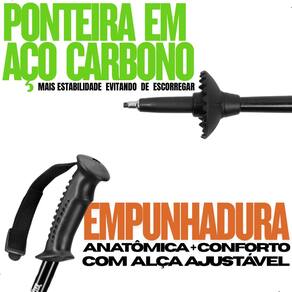 Reduz o esforço físico e o impacto nas articulações. Melhora o equilíbrio em terrenos irregulares. Fácil de transportar, graças ao design compacto e ajustável. Indicado para iniciantes e aventureiros experientes.
