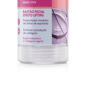 O bastão facial efeito lifting é firmador e preenchedor com ação instantânea, potencializada com o uso diário. A combinação de ácido hialurônico e colágeno vegetal protege a barreira da pele, mantém a hidratação e auxilia na renovação celular.