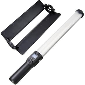 Bastao luz led godox lc500 Iluminador de led lc500 da godox parece um sabre de luz com 56 cm de comprimento e comprimento do vão dos leds tem 35 cm com um diâmetro de 5 cm e seus 516 leds têm uma temperatura de cor de 5600k ou 3300k para atender às condições ou apenas para efeitos criativos. A intensidade da luz também é variável, de 10 a 100% para atender aos requisitos de iluminação do seu assunto. Embora sua saída seja omnidirecional, ela pode ser moldada e direcionada pelos bandoors inclusos abas . A alça do de luz faz com que seja uma sapata para uso manual e uso como luz de corte, luz lateral ou luz principal para iluminação seletiva e retratos. Na base no tem uma rosca padrão 1/4' para fixar em tripés ou em outros acessórios. Especificações técnicas: Ângulo de feixe: 360 Temperatura de cor: 5600k 300k 3300k 300k Padrão de precisão de cor: cri 95 a 5600k Tlci: 95 em 3300k Intensidade ajustável: 10 a 100% Display: lcd Fotometria: 111,5 fc / 1200 lux a 3,28 pés / 1 m Quantidade de leds: 516 Dimensões do aparelho: 2,2 x 22,2 '/ 56,0 x 565,0 mm Peso da luminária: 760 g Canais / grupos: 16/6 Consumo máximo de potência: 18 w Duração da bateria: 2h Tempo de carregamento: 2,5 h Comprimento do vão dos leds: 35 cm Marca: Não Informado