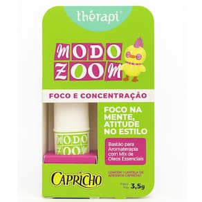 com mix de oleos essencias modo zoom foco e concentração 3,5g therapi capricho Foco na mente, atitude no estilo. Mil ideias, mil abas abertas, zero foco A gente entende. Modo zoom é seu aliado na hora de se concentrar no que importa - seja pra estudar, criar ou colocar a mente no lugar. Com ingredientes naturais, veganos e sem testes em animais, te ajuda a organizar os pensamentos, sem perder o brilho. Foco também é autocuidado e aqui, a gente faz isso com personalidade. ========== Composição português : triglicerídeo caprílico/cáprico, cera de abelha sintética, cera de carnaúba sintética, óleo de soja, óleo de coco, cera microcristalina, de cacau, óleo essencial de laranja doce, óleo essencial de cravo, óleo essencial de bergamota, óleo essencial de lavanda, de karité, óleo de amêndoa doce, fenoxietanol, caprililglicol, bht, citral, d-limoneno, eugenol, linalol. ========== Modo de uso: aplique o produto nas áreas desejadas, como pulsos e pescoço massageando o local com a ponta dos dedos. Anvisa: 25351.091886/2025-08
