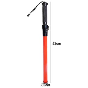Nosso Bastão Sinalizador Vermelho, possui uma luz de Led potente que permite uma boa visão noturna, Comprimento de 53cm, com seu cabo antiderrapante para prevenção de quedas e um cordão de nylon para melhor segurança.