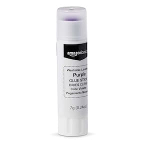 Bastões de cola escolar laváveis roxos Amazon Basics, secam e transparentes, bastão de 0,24 onças, pacote com 30