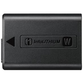 A bat recarregável de íons de lítio NP-FW50 da Sony é única em seu design, pois não apenas fornece energia para sua câmera, mas também exibe a capacidade restante da bat. Bats de íon de lítio pequenas e leves podem ser carregadas ou descarregadas a qualquer momento sem desenvolver efeitos de memória.