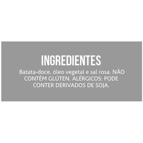 batata-doce, óleo vegetal e sal rosa. Não contém glúten. Alérgicos: pode conter derivados de soja.
