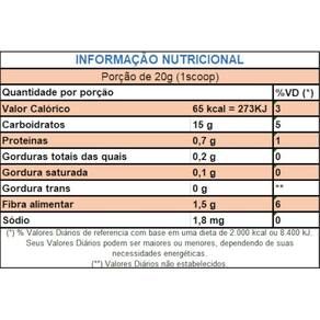 - 1Kg de suplemento representa 4Kg de Batata Doce. - 20g 1 scoop equivale a 80g de Batata Doce. - Fonte de vitaminas e minerais. - Carboidrato de baixo índice glicêmico.