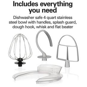 Construída para uma variedade de massas e misturas, esta batedeira Hamilton Beach Stand Mixer pode fazer de tudo, desde bater merengues delicados até misturar massa de pão pegajosa.