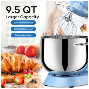 A batedeira de alimentos Vezzio possui um batedor, gancho de massa e batedor, oferecendo uma mistura de versatilidade de mistura para misturar, bater, bater, amassar ou misturar ovos ou creme. Esteja você fazendo bolos, pães, biscoitos ou doces, a proteção contra respingos da batedeira com escotilha de acesso ajuda a evitar sujeira, enquanto os acessórios de mistura próprios para lava louças facilitam a limpeza.