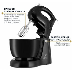 Com batedores super-resistentes e para maior precisão no preparo de massas, acompanha batedor para massas como, bolos, pudins e mousses.