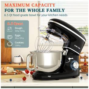 A batedeira CHeflee combina durabilidade e estilo em um só produto. Com um potente motor de cobre puro de 660W, esta batedeira de cozinha possui um design elegante e moderno, com luzes de LED que servem como botões indicadores de energia. Sua tigela de mistura de aço inoxidável de 6,5 litros oferece capacidade suficiente para preparar diversas receitas, desde cookies até pães, bolos de aniversário ou purê de batatas. As 6 configurações de velocidade proporcionam um controle preciso, permitindo desde movimentos suaves até misturas vigorosas. A ação de mistura planetária é ideal para massas de pão, misturas espessas, clara em neve e chantilly. Além disso, o design basculante permite fácil acesso à tigela e acessórios, enquanto as ventosas de silicone mantêm a batedeira estável durante o uso. Com certificação ETL e GMark.