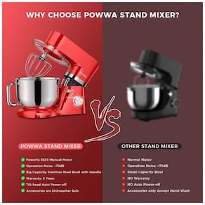 Motor potente de 660W O misturador de suporte elétrico POWWA possui um motor manual 8830 de alta qualidade com consumo de energia de 660W, possui longa vida útil e fornece energia forte para atender à maioria dos seus requisitos para um misturador de cozinha ruído de operação 70dB. 7 modos de velocidade 6 velocidades de mistura contínua baixa a alta e 1 modo de pulso podem garantir uma mistura sob medida sem esforço e completamente para uma variedade de alimentos, como massa, ovo, carne, legumes, pizza, bolo, pão, biscoitos, pastelaria, Muffins, Waffle, Cobertura, Merengue, Purê de Batata e Mais. Tigela de 7,5 LITROS Esta tigela de mistura é feita de aço inoxidável 304 importado que garante a segurança alimentar e a capacidade de 7,5 L pode satisfazer a maior parte do uso diário de famílias de 3 a 7 pessoas Um protetor de respingos removível adequado com uma grande porta de alimentação ajuda a adicionar ingredientes sem fazer bagunça, permitindo que você cozinhe com grande facilidade, aproveite a preparação de pratos caseiros. Multifunções 3 em 1 A batedeira doméstica multifuncional tem um gancho de massa com velocidade de 1 a 3 níveis para massa, um batedor para mexer em velocidade média, um batedor para misturar ovos em alta velocidade e todos os acessórios podem ser lavados na lava louças para Limpeza rápida e fácil