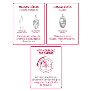 -Acompanha batedor espiral, batedor raquete e batedor globo;