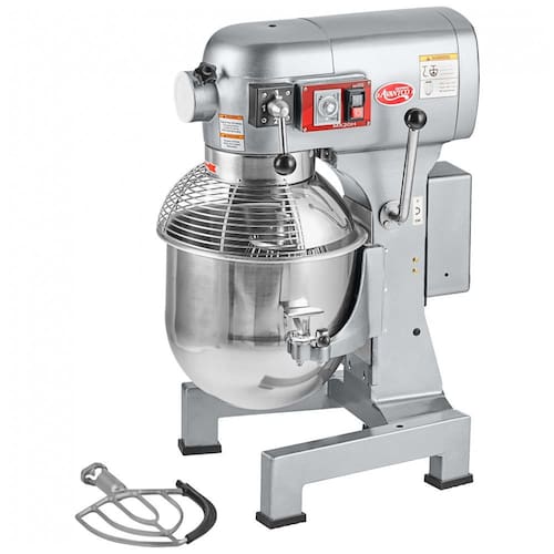 A Batedeira Planetária Comercial Avantco MX20WFB de 18,93 Litros torna fácil preparar purê de batatas e uma variedade de outros alimentos! Com um potente motor de 1 1/2 hp, esta unidade é uma excelente adição para qualquer cozinha que necessita da versatilidade e velocidade de uma batedeira comercial, mas sem o volume de uma batedeira pesada de tamanho grande. Três velocidades permitem misturar desde creme chantilly até massa, com indicação de qual acessório é mais adequado para cada configuração. Um design de transmissão por engrenagem proporciona maior confiabilidade em comparação às batedeiras com transmissão por correia. A tigela de 18,93 Litros faz da MX20WFB perfeita para misturar lotes dos seus alimentos mais vendidos. Um protetor de arame evita que dedos e objetos fiquem presos na batedeira durante o uso, maximizando a segurança. Inclui um hub de 1/2. Iniciar e parar a batedeira é fácil com um simples interruptor liga/desliga, facilitando a aprendizagem! Um levantamento estilo roda facilita a elevação e abaixamento da tigela conforme necessário. Para maior segurança, esta batedeira não funcionará quando o protetor da tigela estiver aberto ou quando a tigela estiver abaixada. Esta batedeira vem com um gancho para massa, 2 batedores planos e um batedor de arame para uso imediato. Um dos batedores apresenta uma lâmina raspadora de silicone, que evita desperdícios e facilita a limpeza.