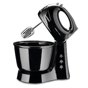 A batedeira B-44-B é preta, tem 400W de Potência, 3 velocidades, função turbo, batedores de aço cromado e acompanha uma tigela grande (3,6 litros) que comporta receitas com muitos ingredientes. O melhor resultado em receitas do dia a dia, sejam bolos de chocolate, fubá, ou massas. As 3 velocidades servem para você regular de acordo à necessidade e tipo de massa a ser preparada. A função turbo aumenta o batimento, garantindo eficiência. A tigela é grande, cabendo 3,6l (litros), para receitas com muitos ingredientes. Com o botão ejetor, os batedores (pás) soltam facilmente para limpeza, e o exclusivo sistema de fixação faz ela ser mais prática de montar. Os batedores (pás) são de aço cromado, o que garante mais durabilidade e resistência. Elas misturam os ingredientes desde as bordas até o centro, fazendo com que as massas fiquem no ponto certo com rapidez - alta performance, praticidade e precisão. Uso doméstico. 1 ano de garantia.Modelo - B-44-BCor - PretoTipo de batedeira - Batedeira ComumVoltagem (Tensão) - 127V/220VItens inclusos - 01 Batedeira - Manual de InstruçõesNúmero de velocidades - 3 velocidades + turboCapacidade em litros - 3,6LMaterial - PP e MetalTipo de tomada - 10AAlimentação - Energia ElétricaPotência - 400WTipo de batedores - Batedores em Aço CromadoQuantidade de tigelas - 1Comprimento do cabo - 1,50mPeso - 1,800kgDimensões do produto - 33cm x 21cm x 27cm (AxLxP)Garantia - 1 ano