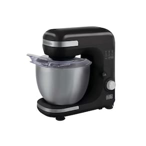 revestimento antiaderente, que facilita a limpeza! Sua tigela em aço inox de 5 litros possui alta capacidade para fazer massas maiores, além de ser muito durável! Ela conta com início inteligente e 8 velocidades, que permitem ajustar desde o preparo suave de massas delicadas até a potência necessária para o preparo de pães. Sua base com ventosas proporciona estabilidade no preparo, e a tampa com abertura permite adicionar ingredientes de forma segura, além de evitar sujar a bancada. Com a BLACK+DECKER, preparar massas fica fácil!