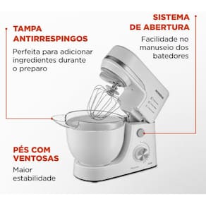 Acessórios Inclusos 1 batedor em gancho, 1 batedor elíptico, 1 batedor plano, 1 tampa anti-respingos, 1 manual