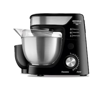 A Batedeira Planetária Mondial, combina potência de 700W com design robusto nas cores Preto e Inox. Seu sistema de batimento planetário movimenta os batedores em rotação dupla ao redor do próprio eixo e simultaneamente pelas bordas da tigela garantindo mais eficiência e homogeneidade na mistura dos ingredientes.